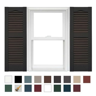 Builders Edge 12 In X 64 In Louvered Vinyl Exterior Shutters Pair In Black 010120064002 The Home Depot